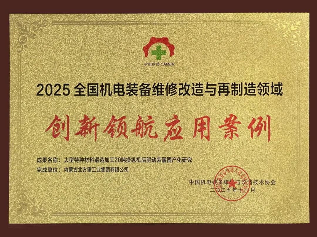 近日,公司两项技术创新成果成功入选2025年中国机电装备维修与改造技术协会“全国机电装备维修改造与再制造领域创新领航优秀案例”,彰显了北重集团在装备技术创新与国产化替代领域的硬核实力。